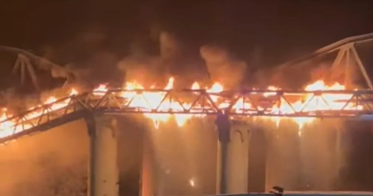 Nei video prima le fiamme che divorano la struttura, poi il crollo di una sua parte.