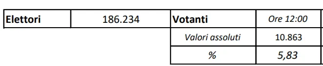 Alle 12:00 hanno votato soltanto 5.897 elettori su 185.394 aventi diritto.