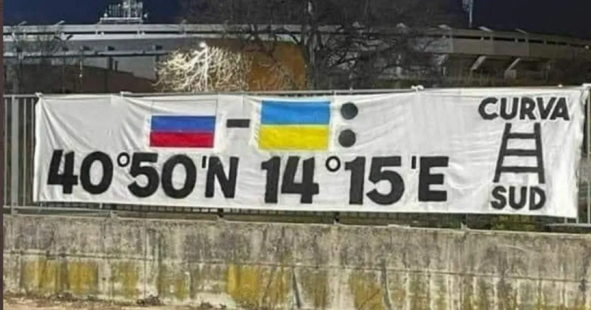 Uno striscione vergognoso, che nulla ha a che vedere con lo sfottò piacevole tra tifosi di diverse squadre. È quello realizzato dai tifosi della Curva Sud dell’Hellas Verona all’indirizzo della città di Napoli. Con la squadra partenopea ospite oggi nella città scaligera per la partita di campionato, i supporters gialloblù hanno dipinto la bandiera della Russia e dell’Ucraina, aggiungendo subito dopo le coordinate di Napoli. Di fatto un invito ai due Paesi in guerra a spostare la propria attenzione sul capoluogo campano.