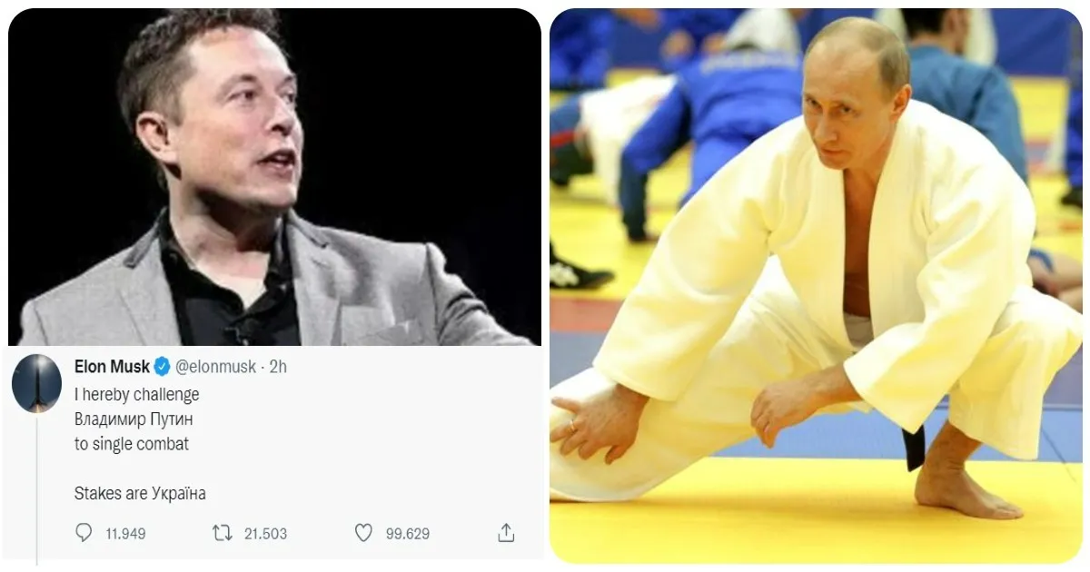 Visionario? Sì. Geniale? Pure. Ma che Elon Musk si lasci spesso prendere la mano, cedendo alla smania di protagonismo, è assodato. Emblematico quanto scritto su Twitter poco fa dal ceo di Tesla: “Con la presente sfido Vladimir Putin in un singolo combattimento. In palio c’è l’Ucraina“. Musk non aggiunge dettagli sulle modalità della lotta, ma è noto che come Putin sia un amante del judo. “Sei d’accordo con questa lotta?“, ha poi chiesto l’imprenditore taggando il Cremlino.