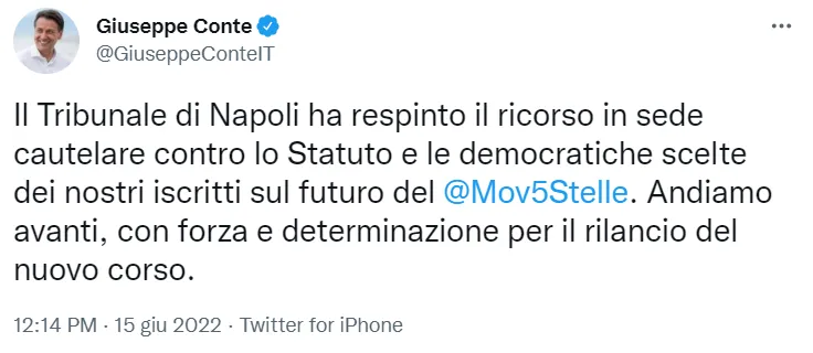 Sì, perché il famoso detto secondo cui “il diavolo è nei dettagli” trova conferma anche nella decisione partorita oggi dai giudici napoletani. E ad evidenziarlo – chissà quanto consapevolmente, chissà quanto con un riflesso condizionato dalla sua precedente professione da avvocato – è lo stesso Giuseppe Conte. Nel commento di esultanza pubblicato su Twitter, infatti, l’ex premier precisa infatti che il Tribunale ha respinto il ricorso “in sede cautelare“.