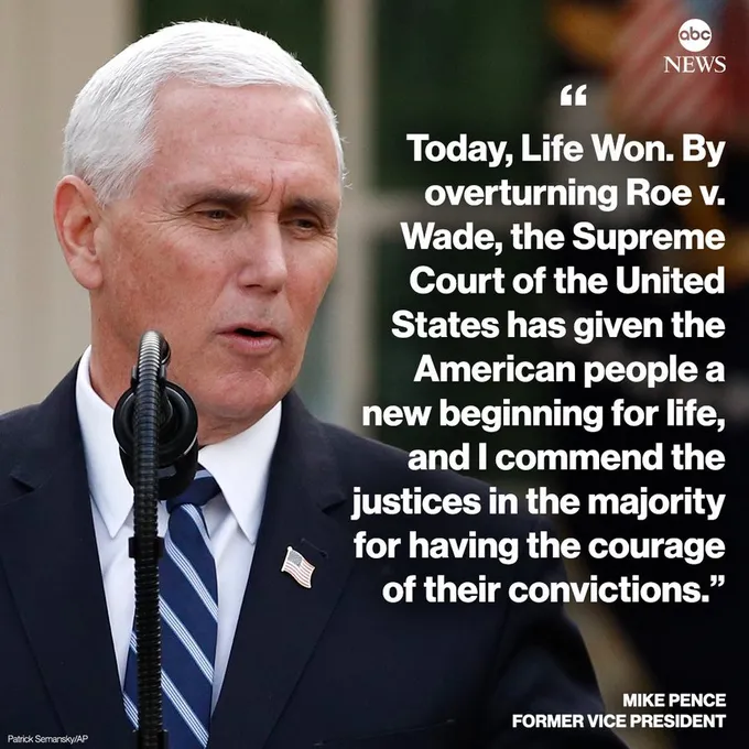 Festeggia anche Mike Pence, vice di Donald Trump, risaputo tradizionalista cristiano, fervente conservatore, secondo cui oggi “ha vinto la vita“, e la Corte Suprema “ha dato agli americani l’inizio di una nuova vita“.