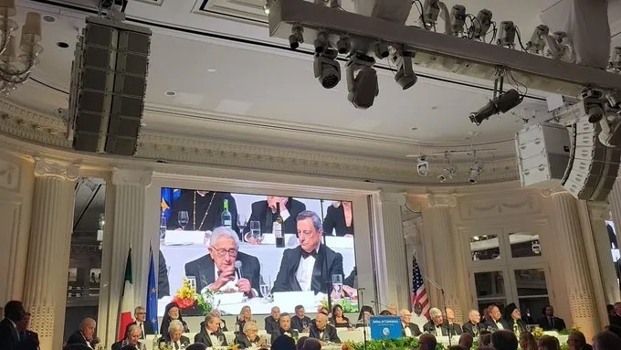 Ma nel discorso di Kissinger ‘è spazio anche per un siparietto niente male. L’americano sostiene che nonostante Draghi si sia dimesso, il suo ritiro non sarà “mai definitivo”. Notare la faccia di Draghi.