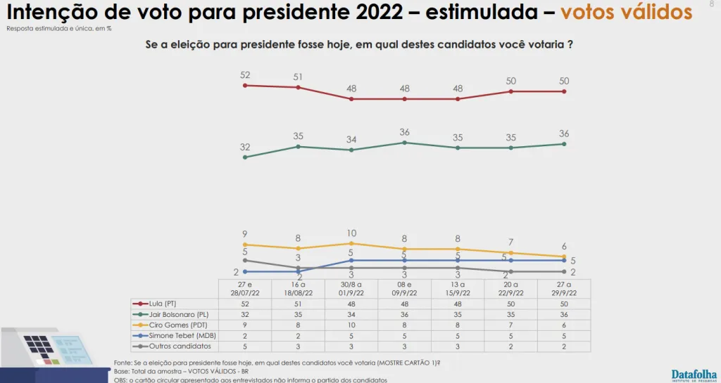 Sì, perché stando ai sondaggi la partita elettorale è pressoché chiusa: l’ex presidente Lula, candidato di sinistra balla sulla soglia del 50%, quella necessaria ad ottenere la vittoria al primo turno senza dover attendere il ballottaggio. Bolsonaro è quasi spacciato.