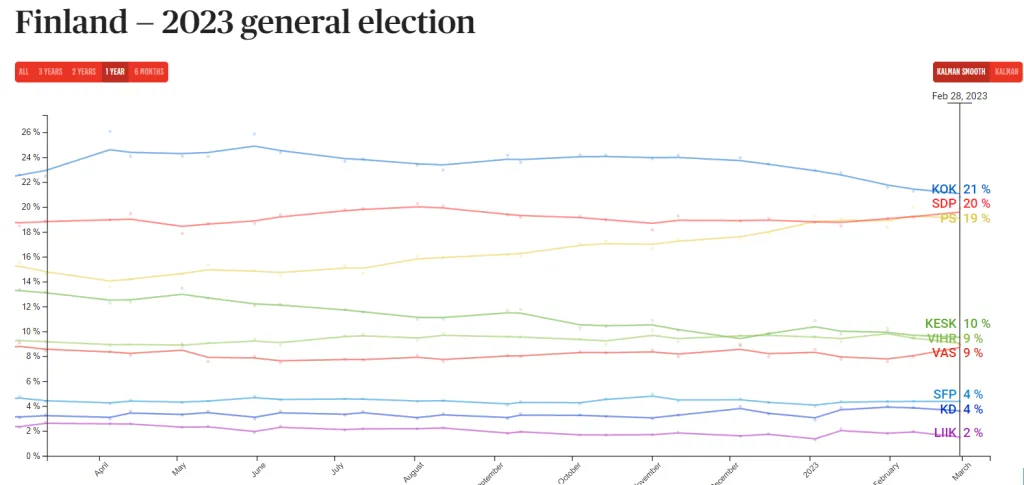 Daniel chiede delle chance di Sanna Marin alle prossime elezioni in Finlandia. Attualmente i sondaggi parlano di un testa a testa. Anzi, di un testa a testa a testa. A contendersi il primo posto sono Petteri Orpo, Sanna Marin e Riikka Purra, leader rispettivamente di Coalizione Nazionale, Partito Socialdemocratico di Finlandia e Partito dei Finlandesi. Qual è la posta in palio? Essere primo partito significa acquisire il diritto di provare a formare un governo in Parlamento. A venti giorni dal voto, secondo la media dei sondaggi di POLITICO, ci sono tre partiti in due punti percentuale. Traduzione: Daniel ha fatto una domanda a cui oggi è impossibile rispondere. Ma una cosa possiamo dirla: il trend delle ultime settimane dice che Sanna Marin è in rimonta. Potrebbe essere una battaglia all’ultimo voto. Spoiler: la seguiremo in diretta, stile Estonia.