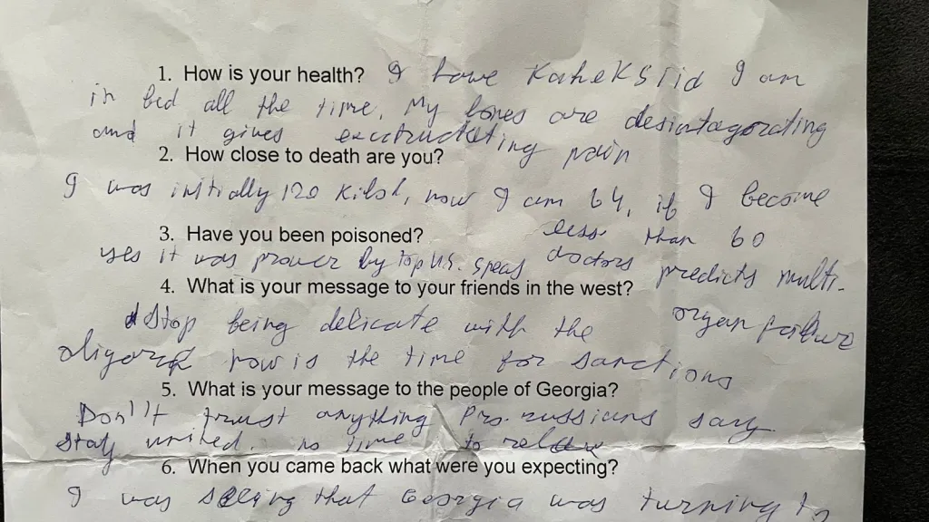 Un manoscritto dalla grafia incerta, scarabocchiato in una stanza d’ospedale e consegnato ai giornalisti. Sarà questo l’ultimo atto pubblico dell’ex presidente della Georgia, Mikheil Saakashvili?
