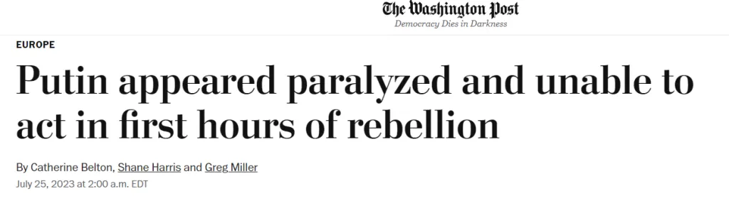Il Washington Post, citando alti funzionari occidentali, descrive con dovizia di dettagli la paralisi sperimentata dal presidente russo nelle primissime ore della tentata insurrezione, il blocco ispirato dalla paura di perdere tutto, forse pure la vita.