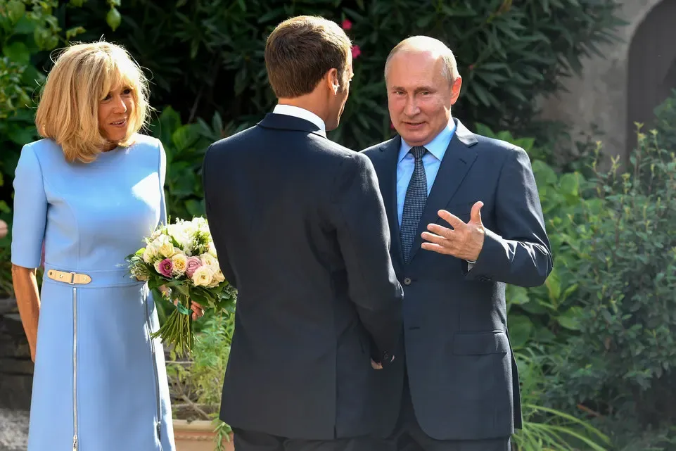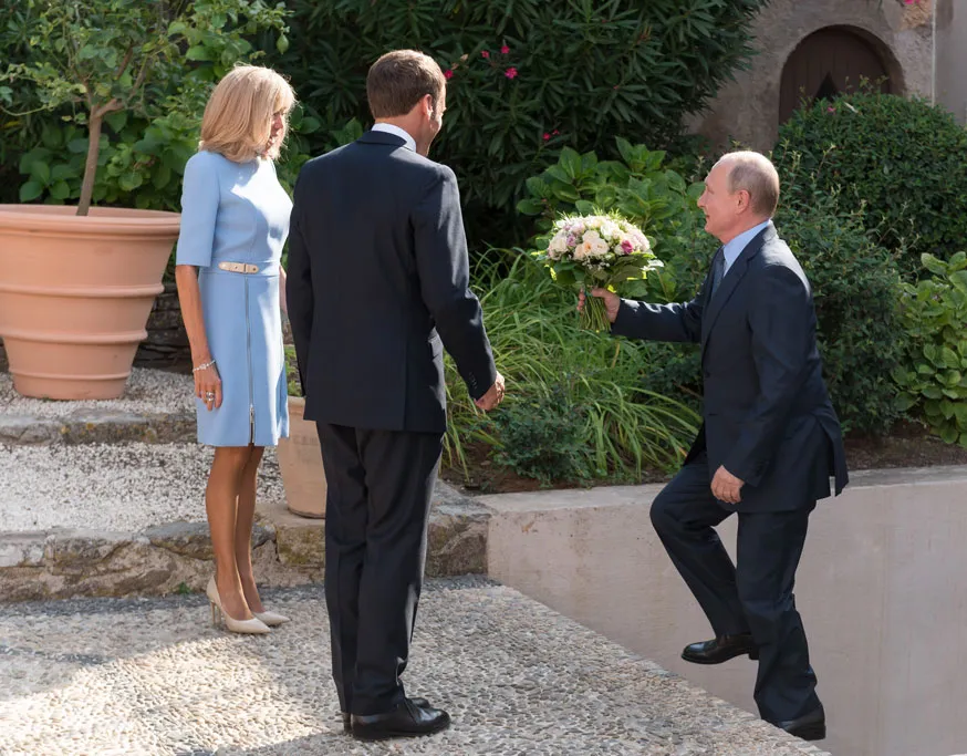 A Fort de Brégançon, residenza estiva dei capi di Stato francesi, Brigitte Macron attende in cima ad una piccola scalinata che l’ospite del giorno le consegni un mazzo di fiori. Vladimir Putin è sorridente, forse addirittura felice di essere accolto con tutti gli onori dal giovane presidente francese e dalla sua consorte.