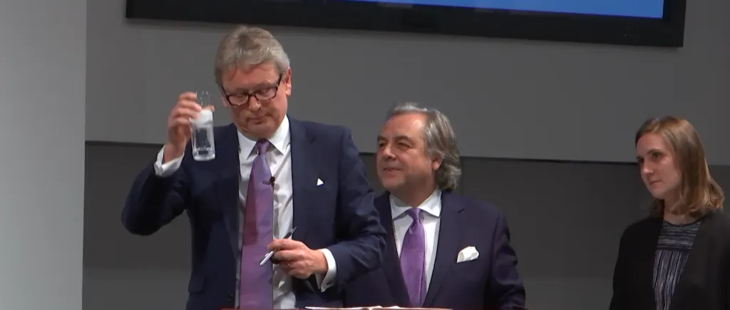 Jussi Pylkkänen, il battitore, è come un direttore d’orchestra: “Shhh“, intima alla folla in estasi dopo ogni rilancio, “duecento milioni, abbiamo duecento milioni qui, datemi 210! 210 milioni!“.