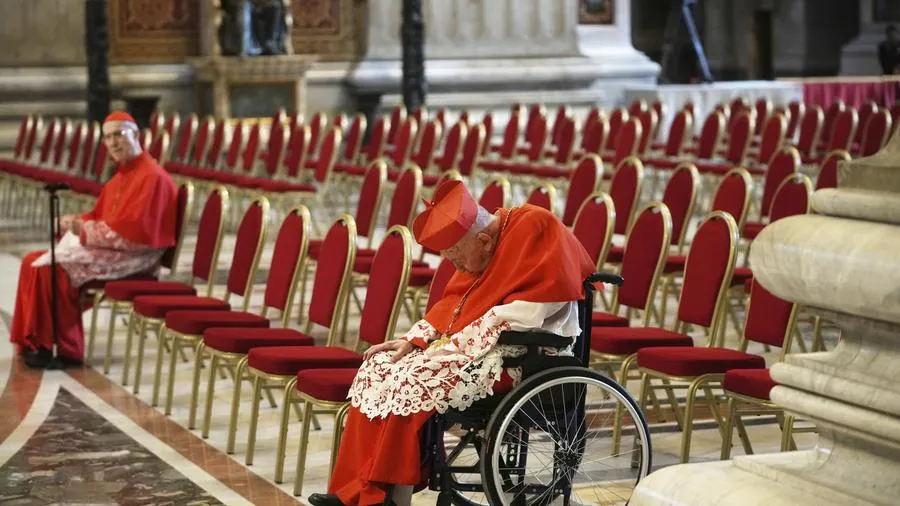 Sei sedute rosse, in una basilica per gran parte vuota, separano due cardinali riemersi dall’oblio dell’età e della Storia. Risulta strano, forte, vederli di nuovo insieme, neanche lo avessero fatto apposta, nemmeno si fossero dati appuntamento per ricordare i loro anni migliori.