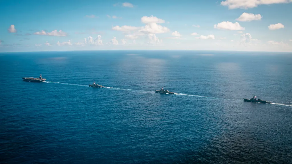 Diamante d’acciaio, cattedrale corazzata, arcipelago artificiale in avanzamento nei Caraibi sotto bandiera statunitense. La storia dice che gli altri comandanti fanno a gara per averla nella propria area di competenza. Il generale a capo del CENTCOM la vorrebbe nel Golfo per mostrare i muscoli all’Iran e garantire la protezione di Israele; il comando responsabile della sicurezza europea la reclama per bilanciare la pressione russa sul fianco orientale della NATO a scopo di deterrenza; nell’Indo-Pacifico c’è chi la considera quasi un diritto naturale, troppo preziosa per non essere schierata nello scacchiere dove si gioca la partita con la Cina, garanzia galleggiante da integrare alla portaerei permanentemente schierata in Giappone, così da scoraggiare la marina cinese.